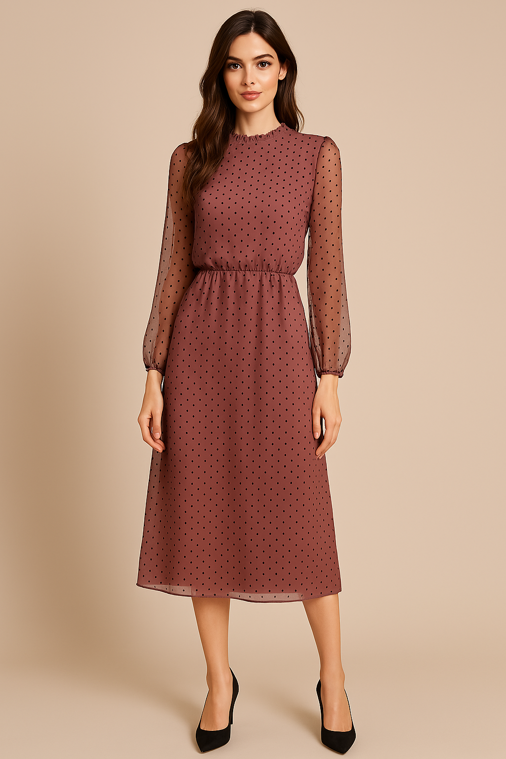 Be effortlessly elegant in our mauve midi dress. This is designed to blend vintage charm with modern sophistication. This dress has a graceful silhouette that flatters without fuss, making it a must-have for any wardrobe.